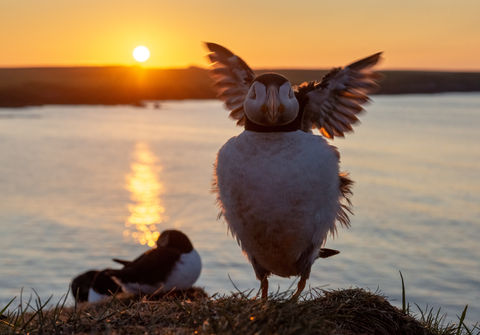 A short distance away lies one of the most spectacular sites in Orkney, the towering cliffs of Marwick head, home to thousands of seabirds. Arctic skuas patrol the cliff tops, looking to steal the catch of the many thousands of guillemots that nest on these sheer cliffs. Puffins nest here in smaller numbers and we will pick them out amongst the crowd! A tiny specialist also lives here, the great yellow bumblebee, a rare bee whose entire population is only found in the north of Scotland.